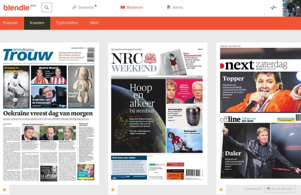 Een maand geleden zag Blendle het licht. Een platform waar je complete kranten en enkele artikelen kunt lezen. Naast abonnee op drie kranten koop ik dagelijks losse artikelen uit de kranten waar ik geen abonnement op heb. Als je slim bent beperk je je tot de artikelen, voor hele kranten kun je beter een abonnement nemen of een ritje naar de kiosk maken.