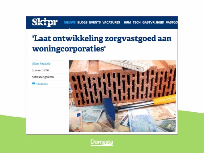 Ondanks al deze negatieve ontwikkelingen is Domesta door gegaan met het vernieuwen en uitbreiden van de portefeuille zorgvastgoed.
