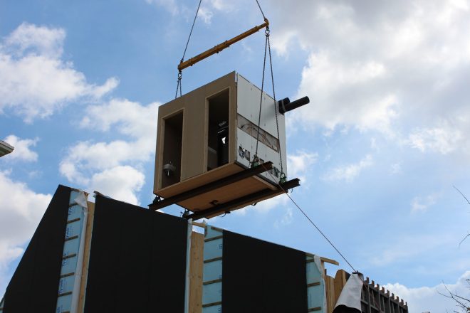 De huizenfabrieken beginnen te draaien. De eerste huizen verlaten in modules de veilige omgeving, op weg naar een plek waar ze mensen gelukkig gaan maken.